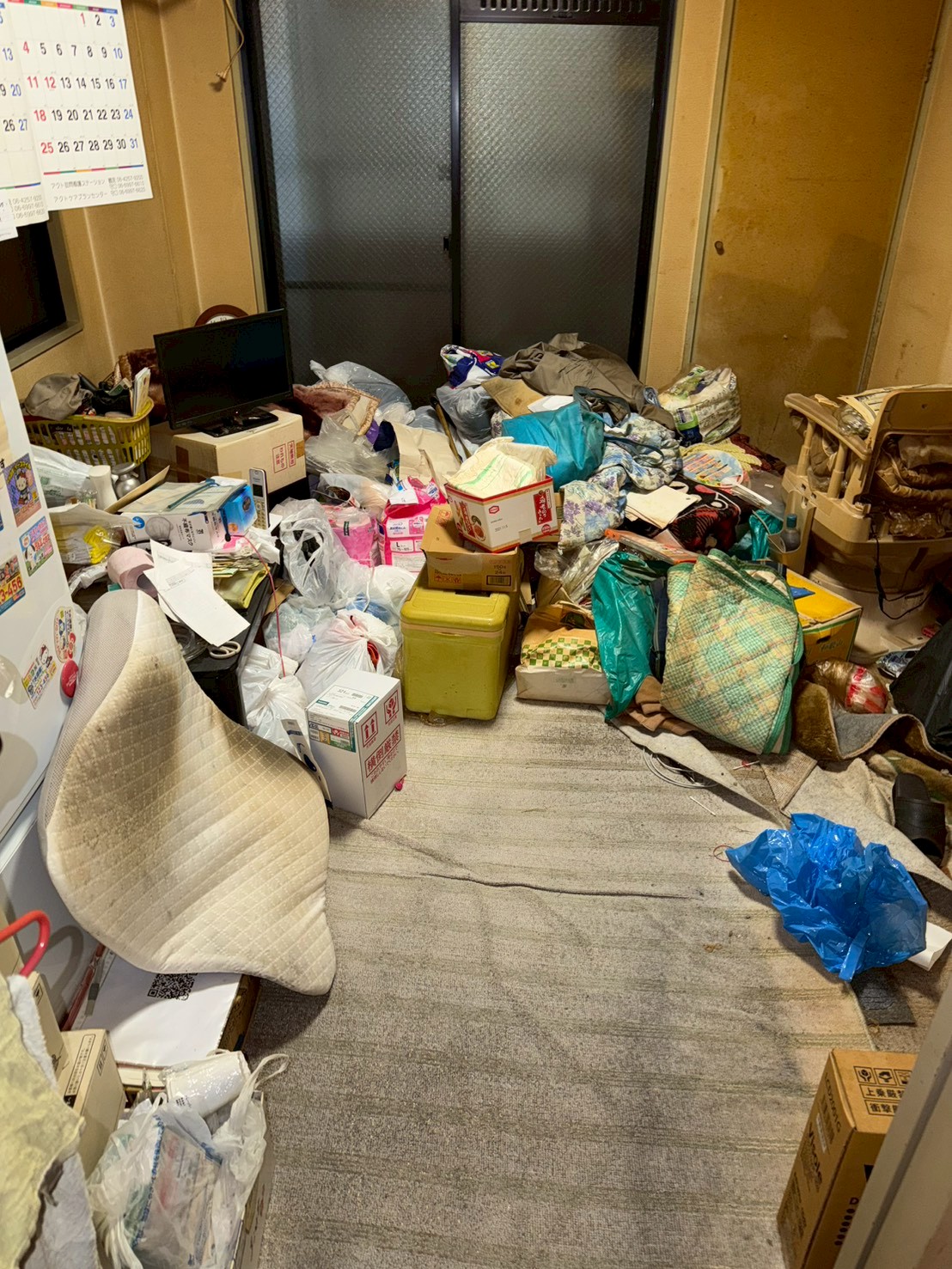 室内には生活ゴミや日用品が多く散乱しており、